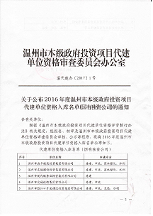 ½üÈÕ£¬ÎÂÖÝÊÐÉú³¤ºÍ¸ïÐÂίԱ»áÐû²¼ÁË2016Äê¶ÈÎÂÖÝÊб¾¼¶Õþ¸®Í¶×ÊÏîÄ¿´ú½¨µ¥Î»×ʸñÄâÈë¿âÃûµ¥(¹úÓжÀ×ʹ«Ë¾)£¬¼¯ÍŹ«Ë¾ÃûÁÐÆäÖС£