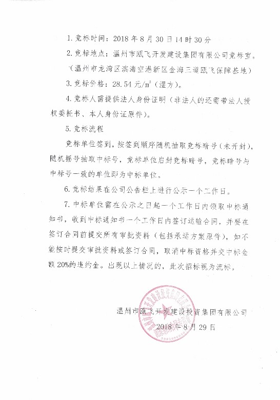 关于温州市焦点片区水心单位原菜篮子地段1-1地块泥浆运输的竞标通告