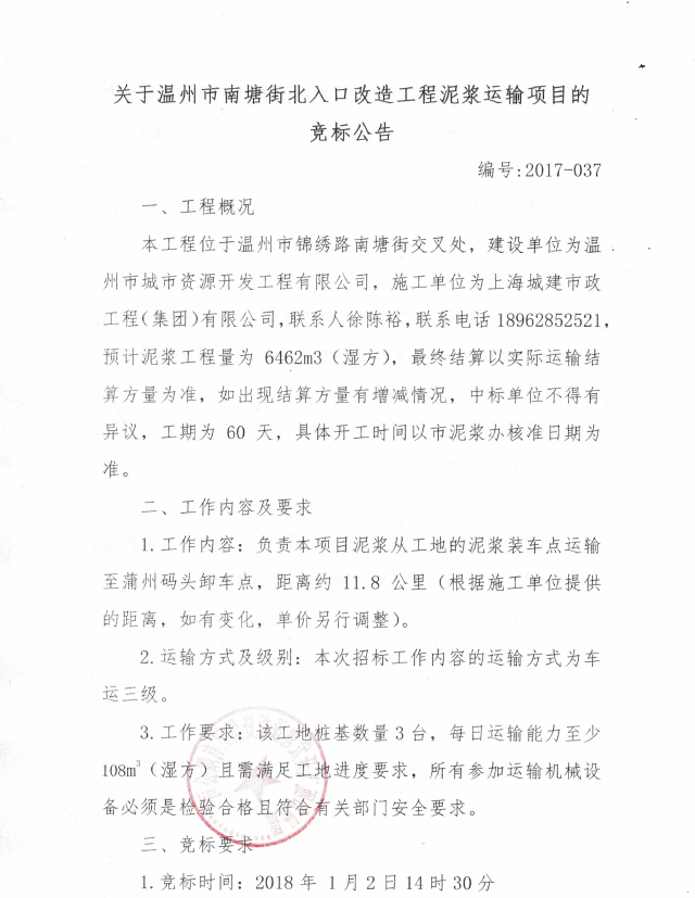 ¹ØÓÚÎÂÖÝÊÐÄÏÌÁ±±Èë¿Ú¸ïй¤³ÌÄཬÔËÊäÏîÄ¿µÄ¾º±êͨ¸æ