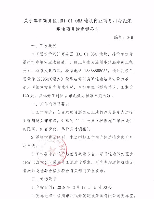 ¹ØÓÚÎÂÖÝÊÐ걺£ÖÐÐÄÇøÄϵ¥Î»D-22µØ¿é³ÇÖдå¸ïа²¶Ù·¿¹¤³ÌÄཬÔËÊäÏîÄ¿µÄ¾º±êͨ¸æ