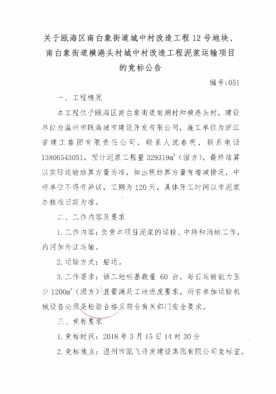 ¹ØÓÚÎÂÖÝÊÐ걺£ÖÐÐÄÇøÄϵ¥Î»D-22µØ¿é³ÇÖдå¸ïа²¶Ù·¿¹¤³ÌÄཬÔËÊäÏîÄ¿µÄ¾º±êͨ¸æ