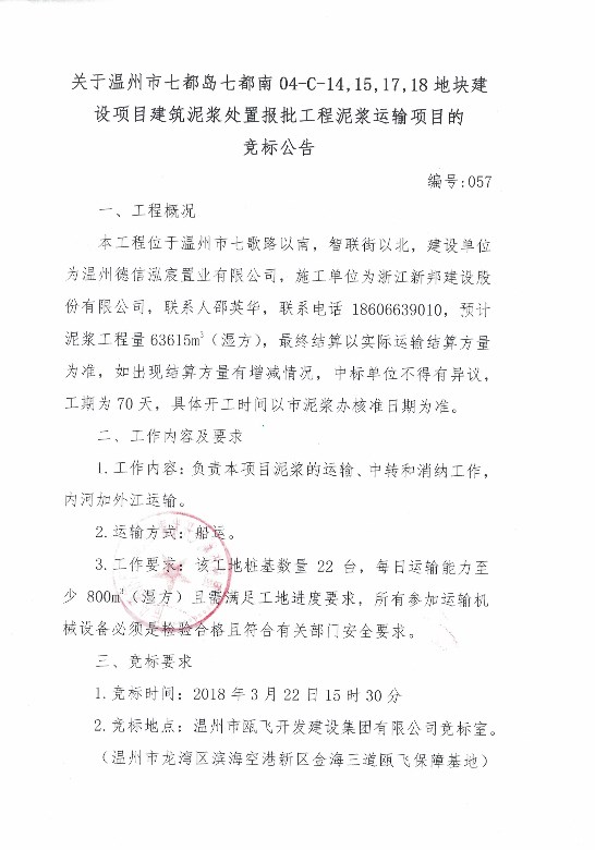 ¹ØÓÚÎÂÖÝÊÐÆß¶¼µºÆß¶¼ÄÏ04-C-14,15,17,18µØ¿é½¨ÉèÏîÄ¿½¨ÖþÄཬ´¦Àí±¨Åú¹¤³ÌÄཬÔËÊäÏîÄ¿µÄ¾º±êͨ¸æ