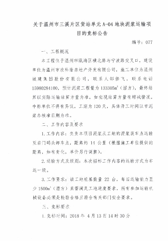 ¹ØÓÚÎÂÖÝÊÐÈýÏªÆ¬Çø»õÕ¾µ¥Î»A-04µØ¿éÄཬÔËÊäÏîÄ¿µÄ¾º±êͨ¸æ
