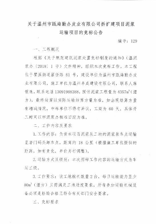 ¹ØÓÚÎÂÖÝÊÐ걺£ÇÚ°ìÆ¤ÒµÓÐÏÞ¹«Ë¾²ðÀ©½¨ÏîÄ¿ÄཬÔËÊäÏîÄ¿µÄ¾º±êͨ¸æ